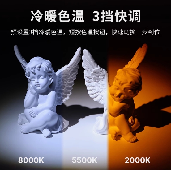 摄影可变焦手电筒冷暖双色温可调摄影摄像